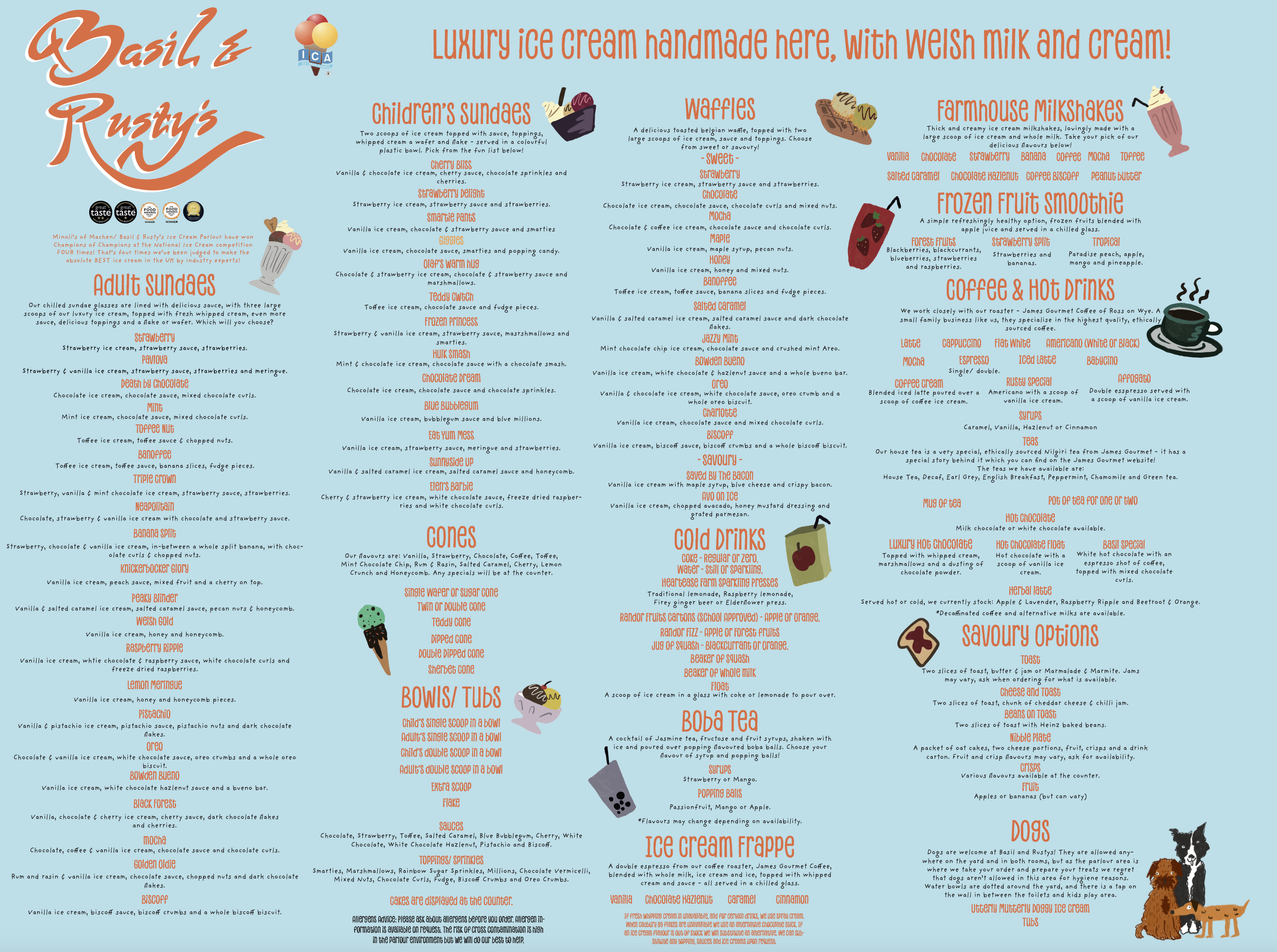 Complete menu and signage for local businesses.